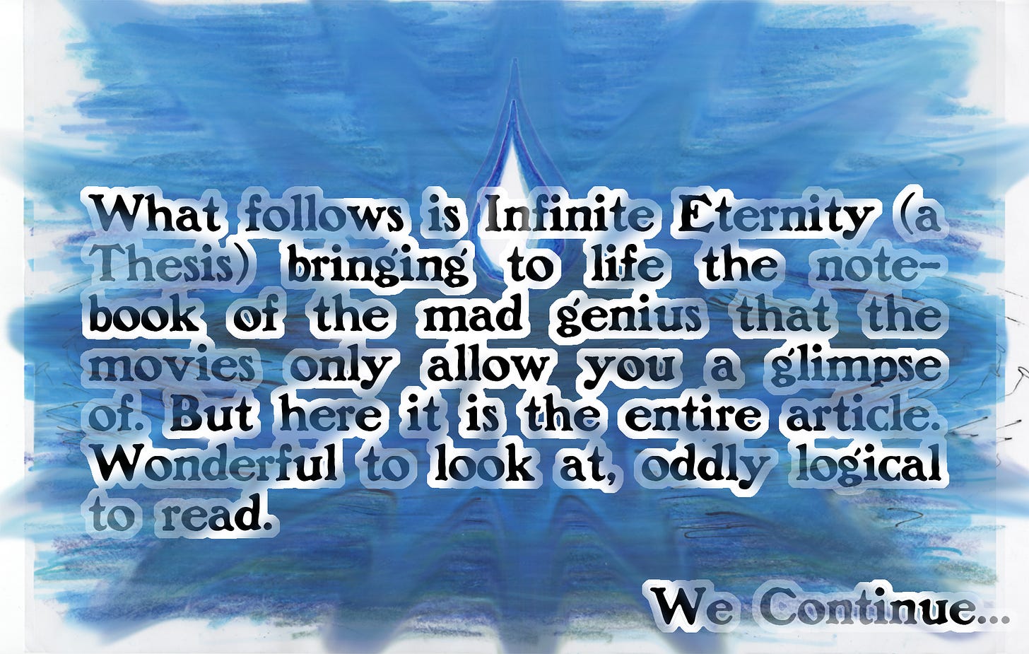 We continue our journey of providing proof of the infinitude of existence, but we can't come at it head on (as in smashing a hammer against a rock to determine which is stronger), but instead must sniff around the edges. Tie together isolated ideas (like a noir detective with a drawer full of red string) until they form a proof. A proof that eternity is…